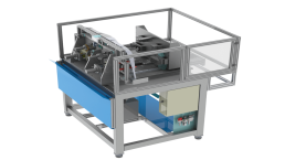 - After the removal of the pieces from the injection machine, they are placed in the equipment by a robot